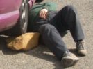 After another hour of relaxed cruising, we go over a bump, and I hear the exhaust hit the bottom of the car. Shortly after that, we hear a little tinny rattle at random intervals, so we stop for a look. The brace the man welded on between the two pipes has snapped, and the ends are rubbing together with the movement of the car.