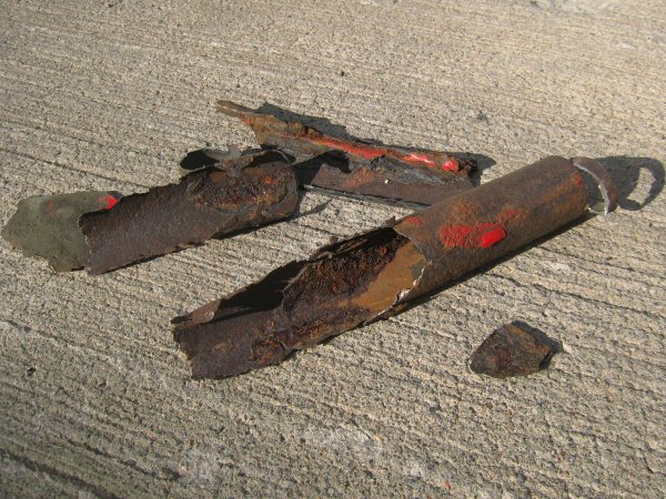 This is my chassis tube, now lying on the floor. Or what's left of it.
