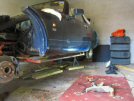 So that leaves the body held on only by the 4 bolts in the footwells, plus 2 in the boot (they should be ok, I replaced them with stainless a few years ago). I also still have to disconnect the steering column, the petrol filler, an earthing strap beside the gearbos, and some electrical wiring, and we're ready to lift. I think. We'll find out soon enough, eh?