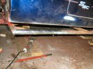 This shows the plate in position, at approximately the right height (bear in mind this is upside down, so the body sits in the gap where the wood spacers are. I decide not to weld it up yet, for 2 reasons: First I want to cut the old one off, turn it over and check that height.