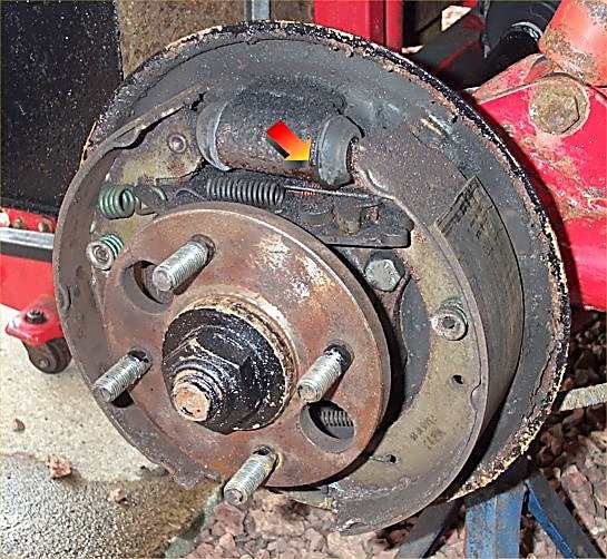 Note in this case the brake fluid leak (arrowed in second pic). This is nothing to do with the brake sticking, but not good news!