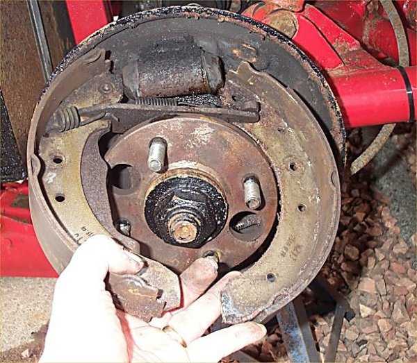 4. Pull the shoes off one at a time - again there is a special tool for this but I use large pliers. Just be careful that you lever on the metal shoe and NOT the brake friction material.