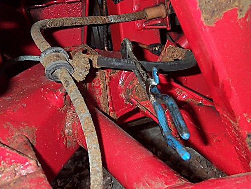 9. At this point you can clean up all of the parts with brake cleaner. In my case I had to also remove the wheel cylinder. First seal off the circuit by clamping the rubber hose shut. This wee tool costs only a few quid and doesn't chafe the hose. It stops all the fluid running out and any air getting in, and minimises the amount of brake bleeding you have to do when (if) you get it all back together.