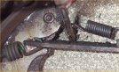 6.Then disengage the handbrake cable from the lever attached to the rear shoe.