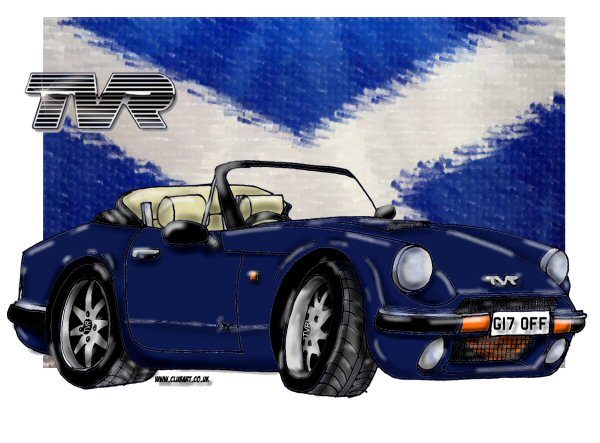 Santa brought me a very nice present though - a couple of framed cartoons of both TVRs, done by Stewart McQuillian of Clubart, and organised by my son. Stewart does the cartoons in the TVR Car Club's Sprint magazine, and is a genius. I can't recommend his work highly enough. I have both pictures on the wall of the wee room I work from at home, and they look absolutely fantastic. There's a link to Stewart's site on the links page of the site, have a look and see the range of gifts he can offer. Even if it's a gift to yourself!