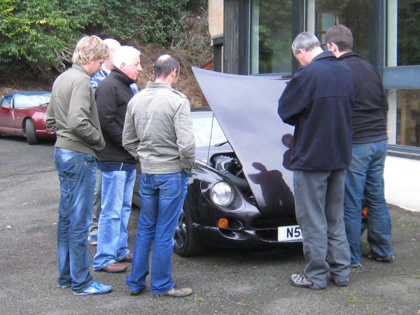 Tom turns up, and is still happy that his Cerbera is still going well. Only problem seems to be that the doors sometinmes don't shut right and the passenger door sometimes flies open. Don't have a clue how that started! If he locks it from the inside, though, it's ok.