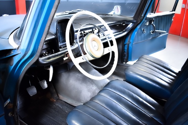 Meanwhile, I've still been browsing classic car web sites, and found this, up for auction. It's a 1962 Mercedes-Benz Heckflosse (or "Fintail") and it's lovely, in an ugly duckling sort of way. The outside looks like shit...