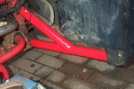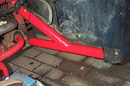 Since I bought the car, I have been meaning to paint the most vulnerable part of the chassis - the two arms at the front of the outriggers, just behind the front wheel arches. A well known rot spot but mine look ok - but you can't see them properly unless you take the inner wheel arches off.