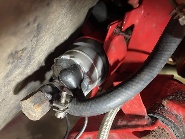 Next step is to disconnect the electric feed and earth to the pump. My pump has a connector tid to the chassis before the pump itself, so that's easy.