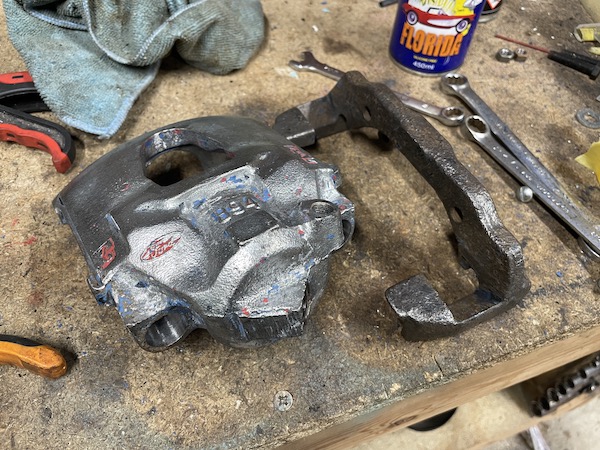 Now I can take down the caliper and bracket and give them a coat of satin black.