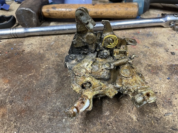 Here's the lock - covered in hardened grease (which I don't remember putting on, so it's been there for years!) - you can't even see how the lock is supposed to work.