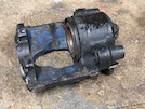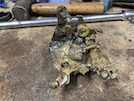 Here's the business end showing rusty piston which won't retract further even with a G-clamp on it. Let's get this apart...