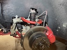 So I jack the car up and remove the wheel. I notice in this photo that there seem to be a lot of dead leaves blowing around inside the garage!