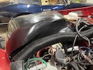 Here's the arch all fitted, with the heater duct in place. You can see how the brake master cylinder fits into that recess in the arch moulding. I still need to reconnect the fan wiring, and then clean all that fibreglass powder off both arches.