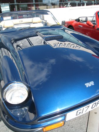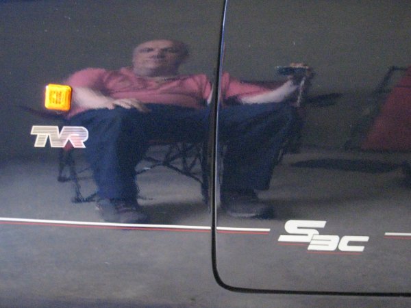 While the car is up on the jack, I decide to give the front a clean (to save me bending down - sad or what?) to remove my collection of English insects, collected along the M6. Meguiars Quick Detailer sees to that wee job, no problem. I do however spot a wee scuff on the bonnet just under the TVR badge, and it doesn't wash off, so it needs to be polished out. I don't have any polish with me today though - I took it out of the boot to save space last weekend and forgot to take it back out of my shed..