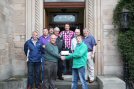 Well Adrian finally sent the photo at nearly midnight on Tuesday, probably planning to send an email first thing on Wednesday to ask about the delay in putting it on, after me moaning about the delay in him sending it... Well I'm still up, so here it is! This shows Ty handing over the dosh, with various members looking on. Apologies for Cami's shirt, which, like Cami, has no volume control. It's one of those "invisible eye" patterns though - if you look at it long enough, you'll see it says "I'm not really gay" in 3D.