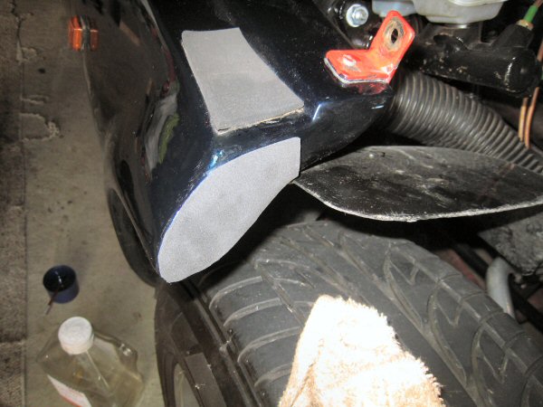 Then I make up a couple of cardboard templates, for the wee lip in the front of the tub, where the bonnet joins above the wheel arch, and for the rear edge of the bonnet wheelarch at that same point. That lets me cut a couple of bits of foam to shape and stick them on. Those two parts were really tight together before, so the foam was getting squashed out - now there's a 1/4 inch gap that the 2 layers of foam fit perfectly.