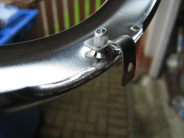 Then pop-rivet it into the hole in the chrome ring.