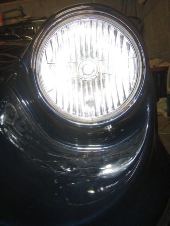 Yes, my headlight rings arrived today. Before I can open the parcel, Adrian arrives for a wee visit. I'm still a bit dubious about the quality (of the headlamps, not Adrian) but they'll do.