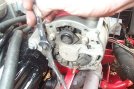 The alternator sits high on a special bracket above the right hand cover - so first step is to remove the alternator. Disconnect the battery first!