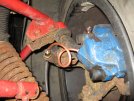 Then I start to the nearside front. The front has two rubber hoses, one from the body out to the hub (to take up suspension and steering travel) and then a short bit of metal pipe before another hose into the caliper (so that you can take the caliper off to change pads, and also to allow the caliper to slide, because that's how it works!