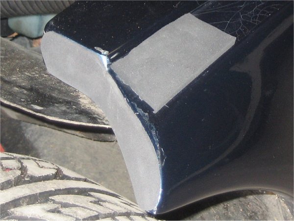I then transfer the template to some sticky-backed foam I happen to have lying around (thanks Dave), clean the paint and then stick them on the wing. Same again on the edge of the bonnet arch.
