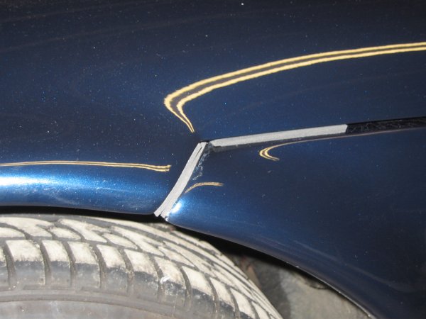 You can see here, where the bonnet has been rubbing on the edge of the wing. You can also see a residual bit of the original foam which has now hardened to a plastic. First I remove all the bits of old foam (both of them!). A lot of the foam wasn't replaced when the bonnet was fixed.