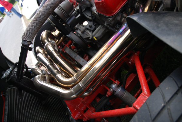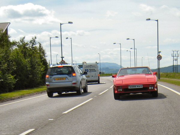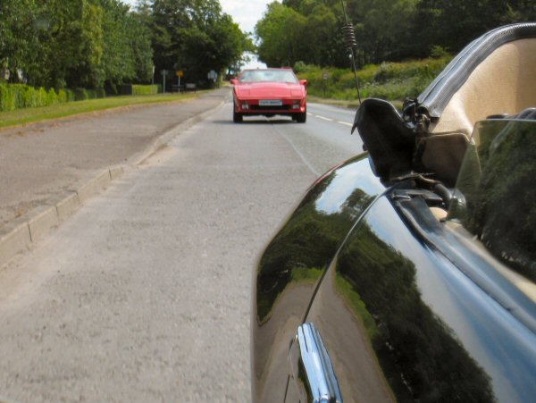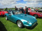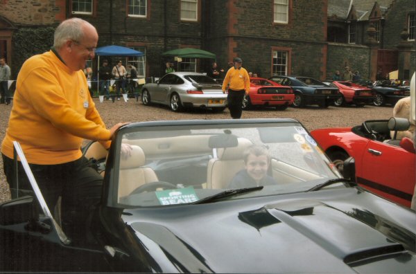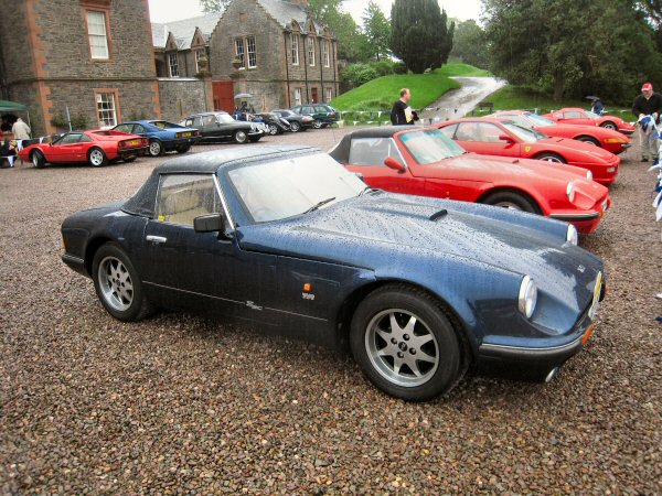 I get one customer though before the rain starts, a young lad called William who starts off telling me that he's always liked TVRs but then spoils it just a wee bit by telling me that he picked mine because it was cheaper than the Ferraris. As we leave the showground, I boot it up the hill, and his cool youthful indifference is broken by the gasp and "Jees" that escapes his lips as the noise bounces back off the bridge walls and he's pushed back into the seat. At the next junction I ease out onto the main road and then ask him if he's ready - then I give it full beans and roar up the road, him sitting with a huge grin. He tells me it sounds better than a Ferrari, much deeper, and he loves it. I tell him that I feel exactly the same way every time I start it up. We have a good chat on the way round, and by the time we get back 20 minutes later, he's laughing all over his face.