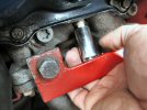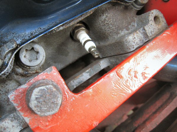Here's the plug, and the red alternator bracket. You can't get an ordinary plug spanner on there.
