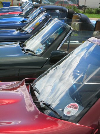 I get up at 6:00 because the sun is shining and it's looking good. Ignoring the agreement of last night, I decide that I might as well clean the car after all. When I go out, Dave, Jim and John are already polishing furiously. I dry the car off with a microfibre cloth, then clean it up with some Quick Detailer. Meanwhile my son goes around cleaning up the wheels. At 6:20 we decide that Mike has been lazy enough, so I phone him.