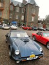 After an hour and a bit we stop for some breakfast in one of the Borders towns, park up and get fired into the bacon and sausage and egg rolls. Marvellous. When we come out again we are accosted by an American family who are admiring the cars.