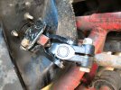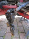 Then use a small hammer to knock the joint off the splines, Note the wee bit of cloth protecting the suspension wishbone!
