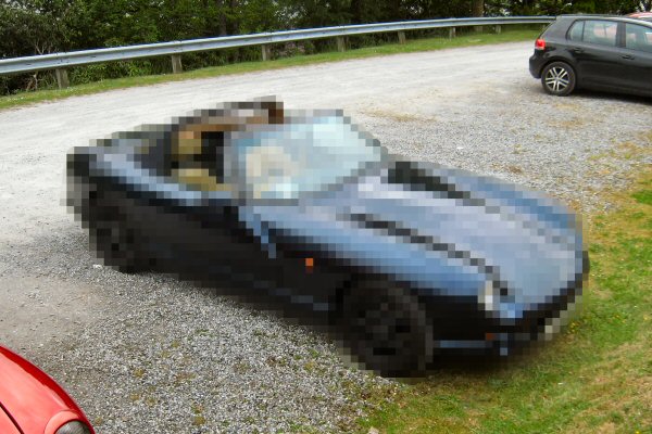 And now it's time for this month's competition. Do you recognise this car? It's a bit blurry because even the camera was blinking with astonishment. Yes it's Adrian's Chimaera, complete with new exhaust manifolds and new MOT! And it's only June!