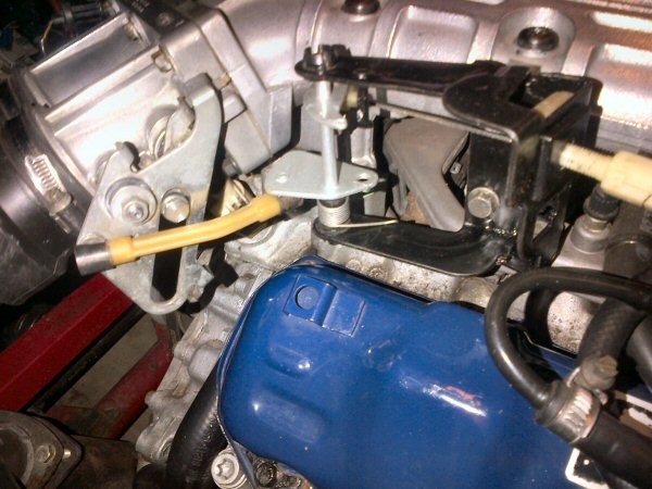 When all the paint has dried, I re-assemble the linkage assembly and refit it to the car, and then fit and adjust the cable so that there's just enough slack to let the throttle fully close.