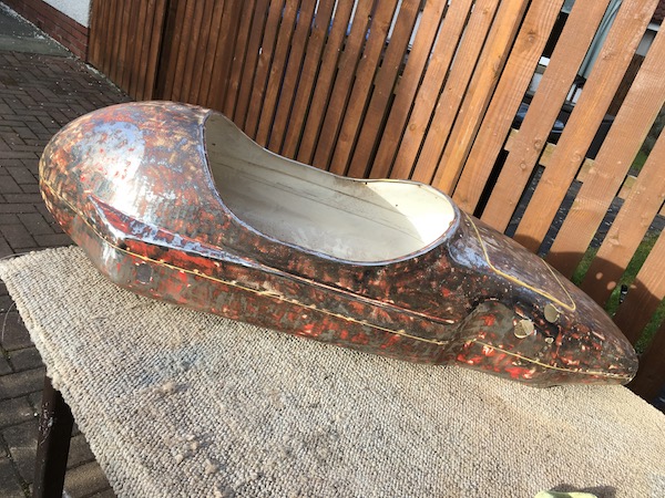 And here’s the bonnet. The three little holes are for the air scoop to keep your legs from overheating when you’re pedalling at max revs.