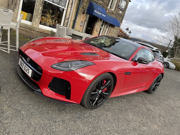 I like these - Jaguar F-Types. This one is a super-duper supercharged model that has a gazillion horsepower. I have a seat in it and it feels nice!