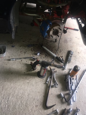 It’s hammer time! After I have clobbered the end of the boot a million times, it has moved around 1/8th of an inch. Apply more penetrating oil, batter an old socket onto the end of the bolt, twist and repeat, with assorted hammer blows thrown in, along with some levering with a pinch bar.