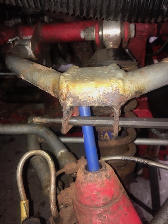But that’s as good as it gets. The bolt is seized solid through the wishbone and the joint, it’s not budging.