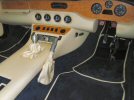 Then it's on to replacing the centre console, First I get myself upside down in the footwell and reconnect the wiring loom, making sure that I route the wiring properly past heater hoses etc. Then I clip the two fresh air hoses on to the rear of the eyeball vents, and push the console into position, making sure I have the radio connectors free, and also tucking way the bulb holder for the "fibre optic" switch illumination. I check that I haven't trapped any wiring between the console and the dash, and then lower the rear of the console into place. Well when I say "lower" I mean heave it into position - the new carpets are much thicker and the console isn't very keen on fitting into position. I put in the two screws securing the rear of the console to the tunnel, and then admire my handiwork