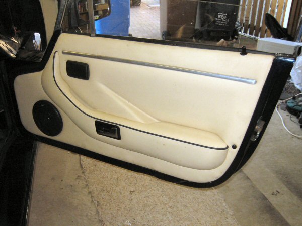 I also cut a little bit of vinyl off the back of the door trim so that I can send it away to get the right shade of magnolia when I order a leather restoration kit for the seats.