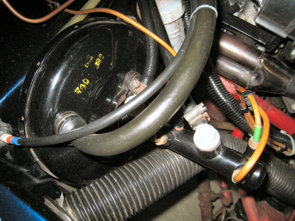 While it was drying out I took some photos of the servo, to show the Saab arrangement with the remote reservoir connected by two pipes. I think I might also try to relocate the radiator expansion bottle to a clamp on the swirl pot, to try to tidy that bit of the bulkhead up (and improve access to the oil filter and spark plugs). I'll see what it's like once the brake reservoir is out of the way.