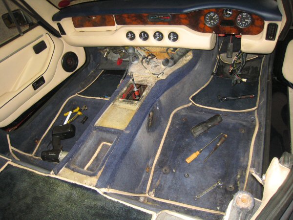 Then I remove the base of the wee cubbyhole in the transmission tunnel, and then the bit of carpet that goes round the sides.