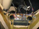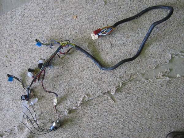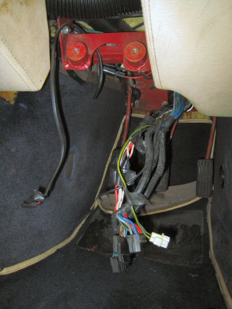 That lets me lift the console and turn it onto its side, and after noting the order of all the wiring connectors, by photographing them (with a few more photos than just this one) and writing them down on a whiteboard on the wall, I disconnect all of the loom and remove the console.