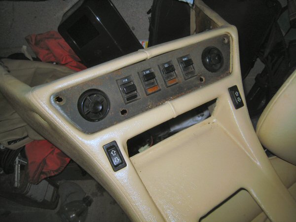 Then I remove the switch panel from the centre console. Again, that'e easy - 4 nuts through the holes you see here, and it's off. Then I note the order of the switches, and then take them out of the panel, and give them a clean with some WD40 and a toothbrush.