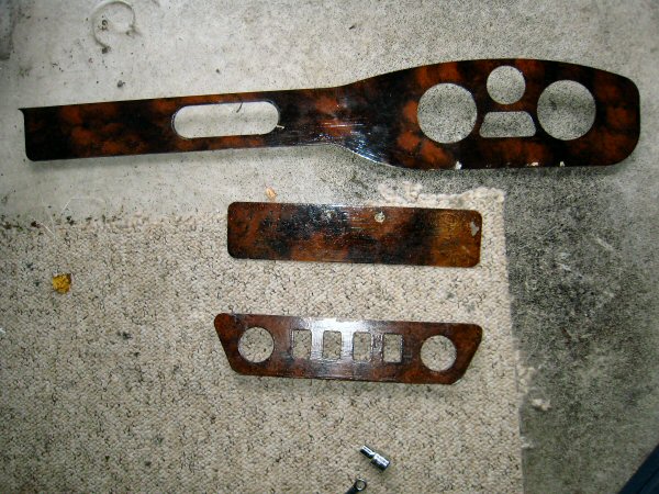 Here's the three panels together - you can just see how rough the finish is. That's because I brush-varnished it on the car, to prevent it getting chipped.