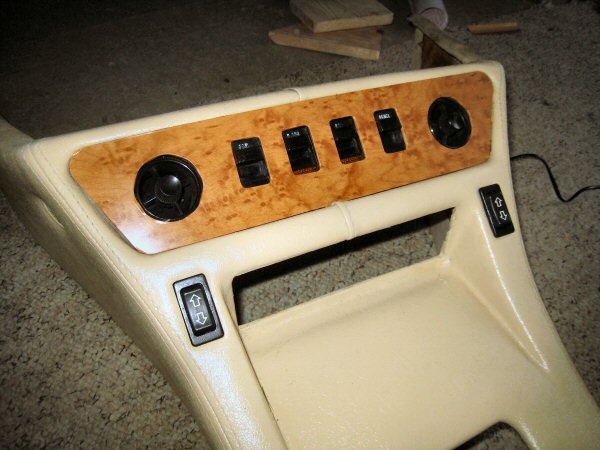 I take the switch panel back off the centre console, peel off the cover, and recover it more carefully (after my self-training session yesterday) using the heat from the fan heater. It's a lot better!