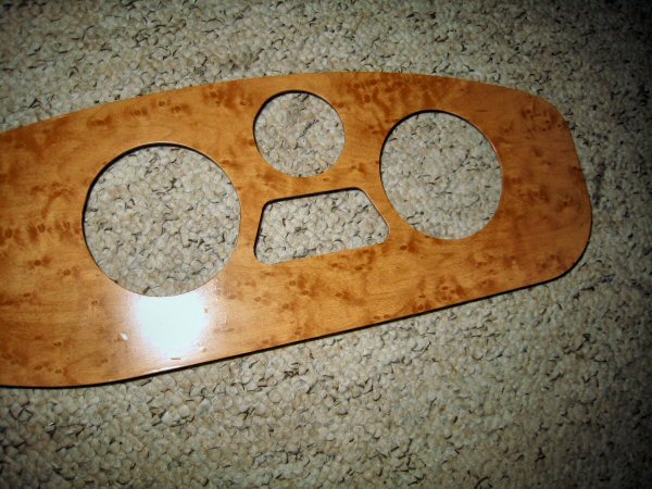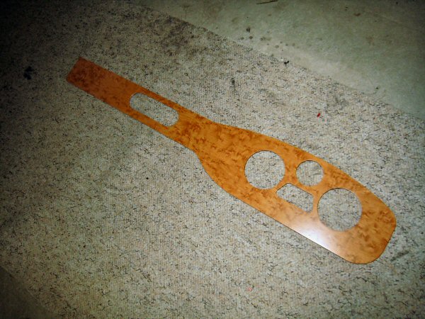 After a browse around various web sites, including classic car and kit car forums, I find a very nice gloss finished wood effect, a bit sized 120cm by 40 cm - more than enough. My concern though is that if it's a bit off the end of a roll, the grain might lie vertically instead of horizontally, and that would look silly. Eventually I decide on a red cedar burr finish that looks quite nice, not too dark, and not too expensive. So I order plenty, so that the direction of the underlying grain doesn't matter - I'll be able to cut the bit I need lengthways or sideways.