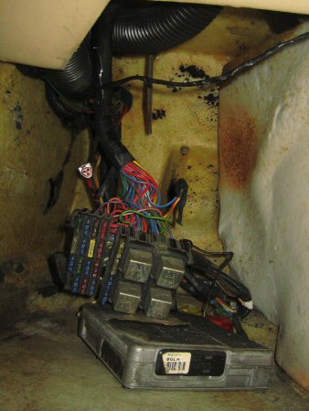 Here's the wiring loom for the 4 switches in the panel (heater fan, font fogs, rear fogs, panel lights), the two window switches, the electric mirror switches, the immobiliser and the cigar lighter (or sat-nav power source so that mapless followers don't get lost, as I prefer to call it).