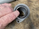 And here's the flange that they bolt into, shiny with a mixture of penetrant spray and perspiration.
