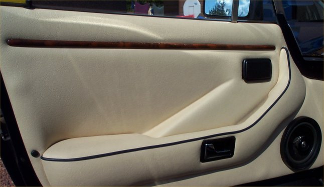 return to the car to refit the door trim, and decide that the little wood effect trim on the panel looks cheap and nasty - it's chipped and plasticky. I have heard that they are made of alloy so let's whip it off and have a look!